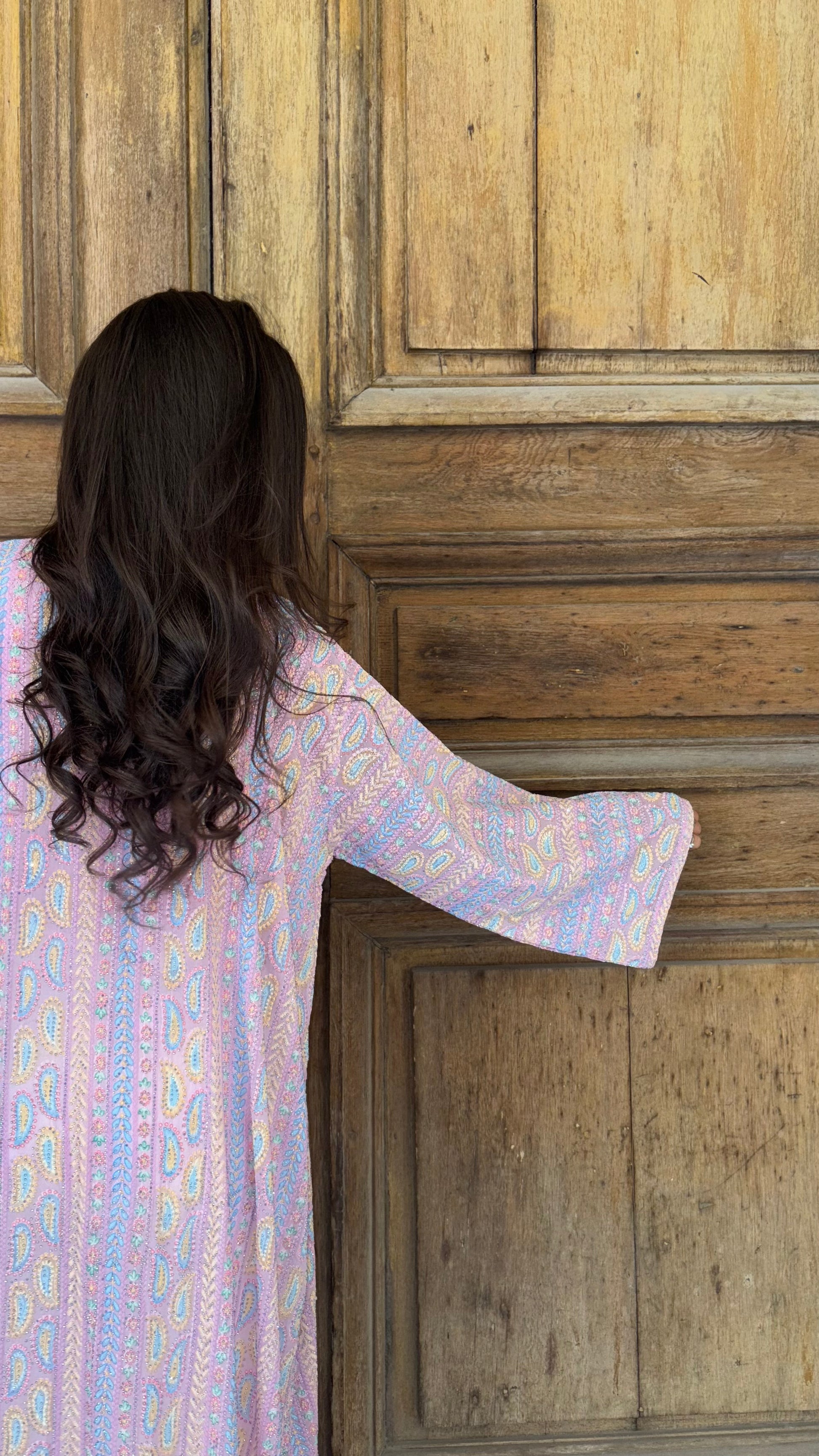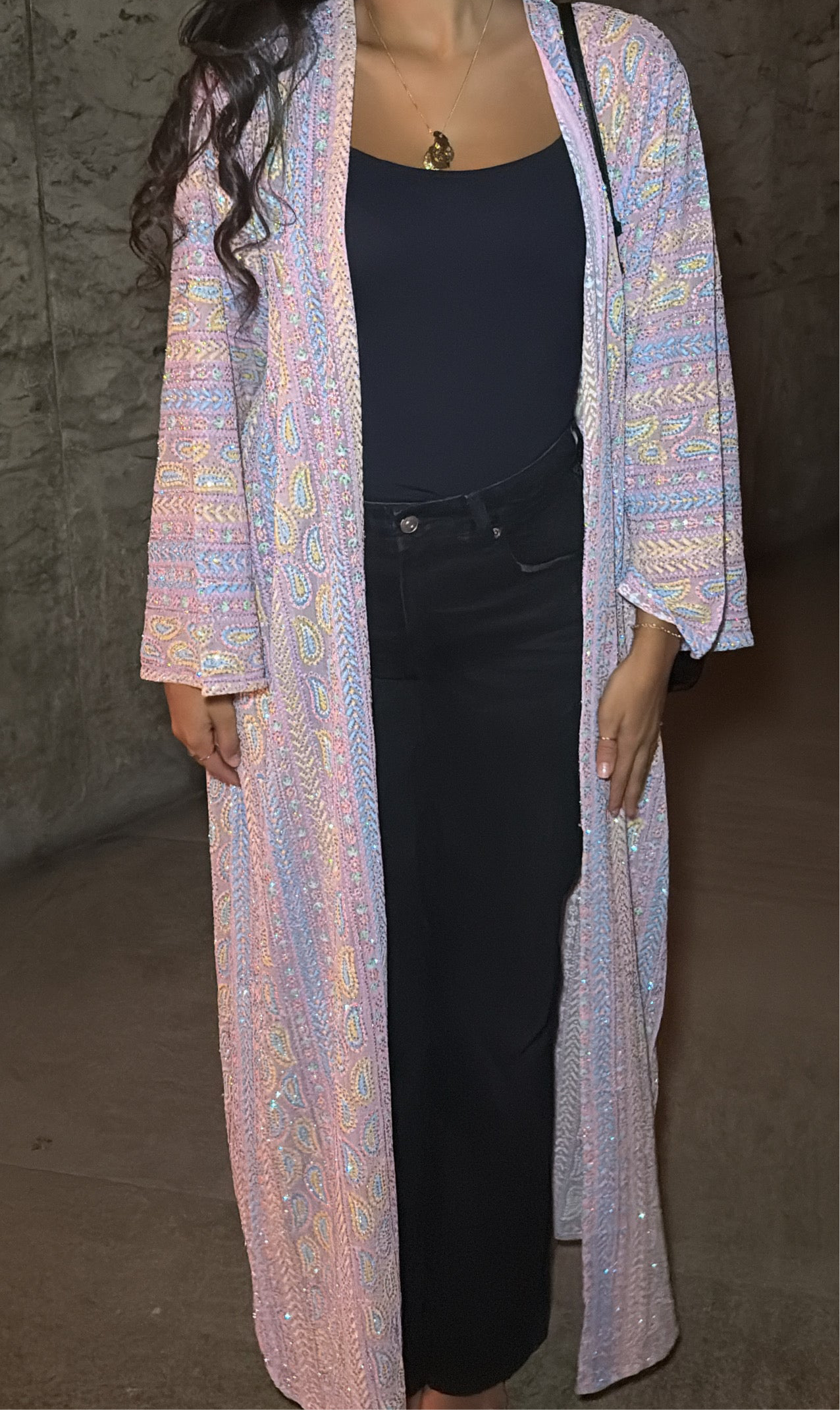 Un chef-d’œuvre de raffinement. Le kimono ALMIRA Pink incarne la féminité moderne avec sa coupe longue fluide, ses détails brodés scintillants et ses reflets nacrés qui captent la lumière à chaque mouvement.