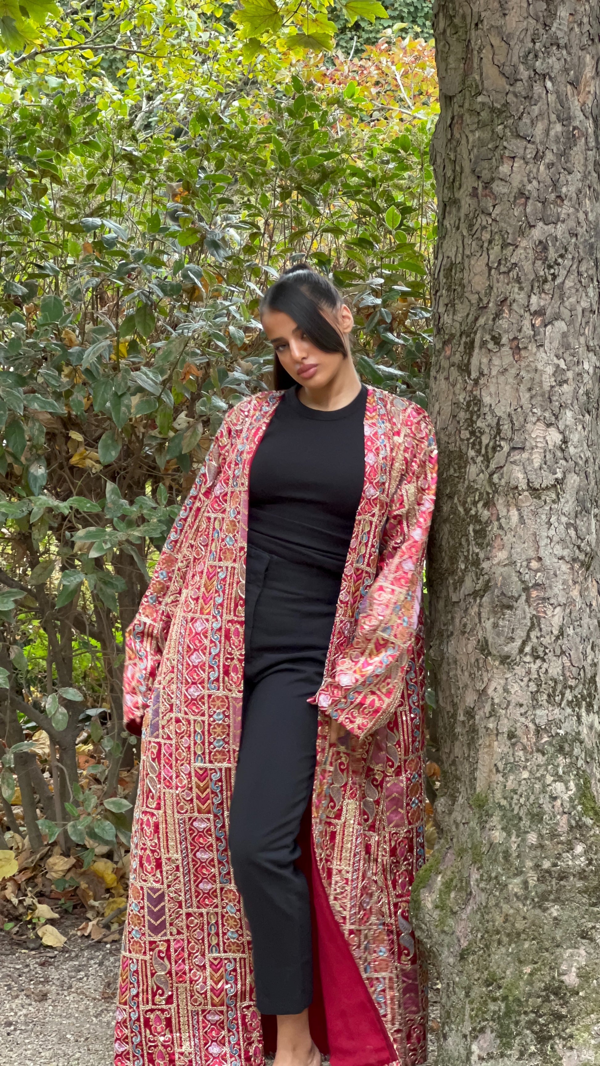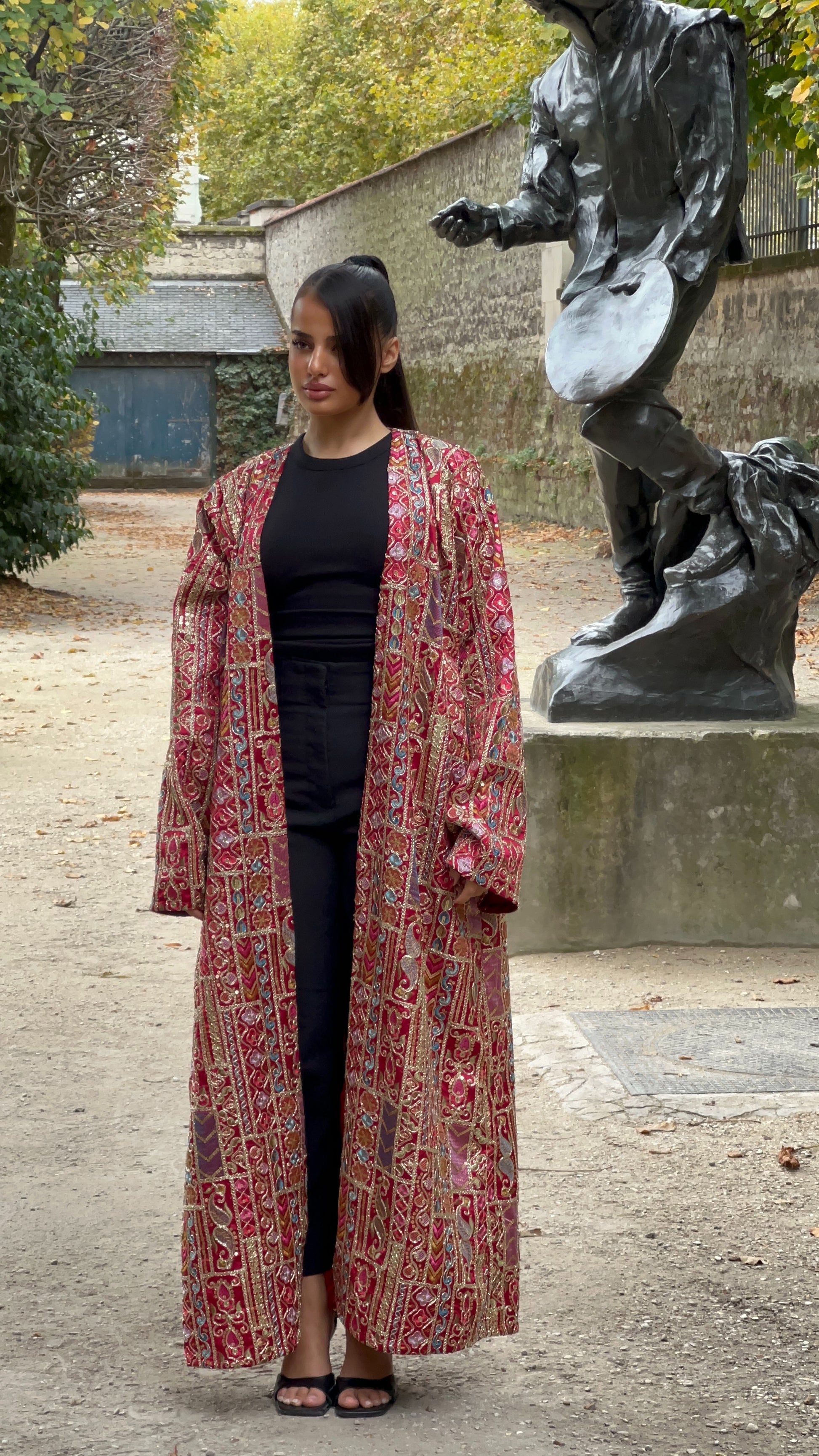 Confectionnés dans un somptueux tissu brocart orné de fils dorés, ces kimonos incarnent l’élégance orientale dans toute sa splendeur. Chaque détail reflète un savoir-faire unique, mêlant tradition et modernité.